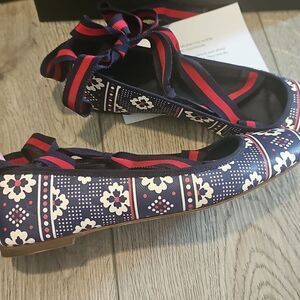 J. Crew Women's Floral Lace-Up Shoes - Navy and Red. Box Included