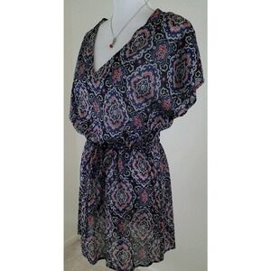 J. Crew~Women's Size S~Navy Blue Multi color Print Cotton Mini Dress.