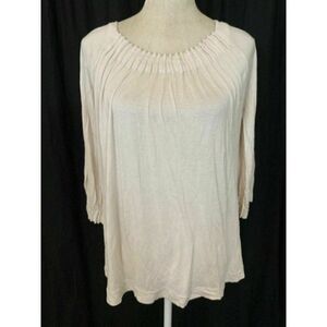 J Crew Womens Solid Ivory Long Sleeve Top Blouse Medium. Length 25, bust 35, waist 44, hips 49. Measurements in inches. Perfect condition. No rips holes stains or fading. Smoke and pet free home. Fast shipping. Soft stretchy material.