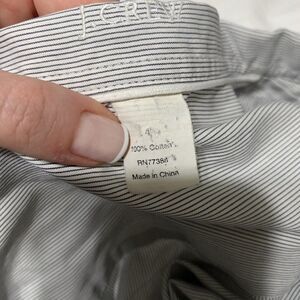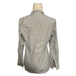 J Crew Womens White Gray Striped Long Sleeve Button Down Work Career Top 4 SmallLength 27, bust 37, waist 34, hips 40. Measurements in inches. Perfect condition. No rips holes stains or fading. Smoke and pet free home. Fast shipping.