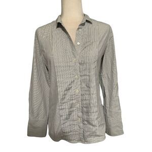 J Crew Womens White Gray Striped Long Sleeve Button Down Work Career Top 4 Small