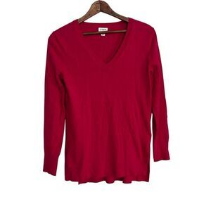 J. Crew Wool Blend V-Neck Knit Long Sleeve Pullover Tunic Sweater Pink Hibiscus Size XS