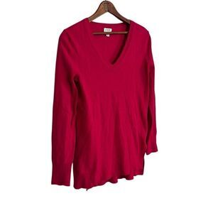 J. Crew Wool Blend V-Neck Knit Pullover Tunic Sweater Pink Hibiscus Size XS