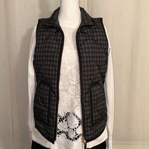 J. Crew XS Gray Black Gingham Dawn Filled Full Zip Quilted Puffer Vest