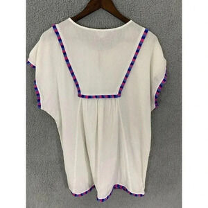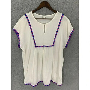 J. Crew adult tunic medium white short sleeve fringe keyhole boho womens