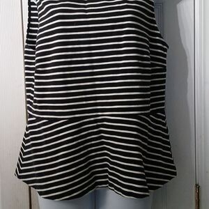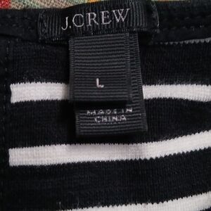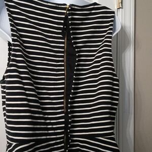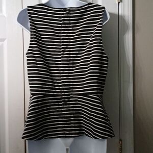 J Crew black white stripe sleeveless blouse full zipper back Sz L EUC