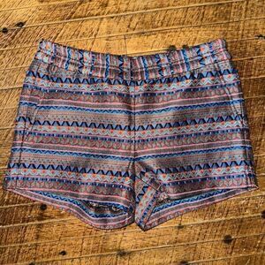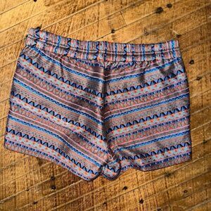J Crew brocade, patterned, elastic waist, flat front, preppy shorts. Pairs well with a flowy blouse or basic tee and flats. Approximately 14.5 inches across the waist, 9 inch rise, and 3 inch inseam. From a pet and smoke free house.