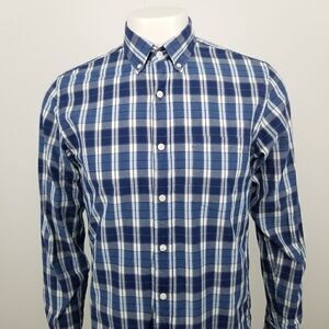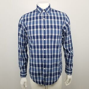 J. Crew mens Blue & White Washed Shirt in Multi Plaid Button Down Size Small