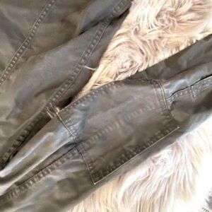 I. Crew like new gray/charcoal 100% cotton vintage distressed utility jacket with front pockets and zip front and button front. Collared. See pics for measurements.