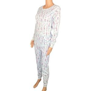 J E Morgan Floral Thermal Long Sleeve Pajama Set Cozy Cold Weather Wear Size XXL