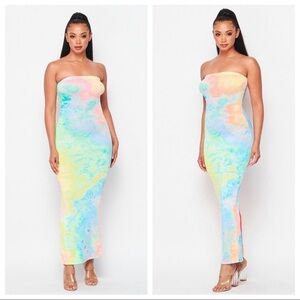 J. ELISE BOUTIQUE MULTI COLOR NEON LIGHT PASTEL Tie Dye Tube Top Maxi Dress