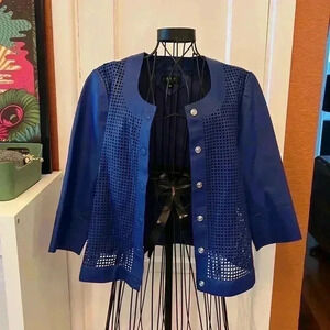 This J Envie leather jacket is the perfect addition to your wardrobe. Made with 100% real lamb nappa leather, this mid-length jacket features a solid pattern, button closure, and accents for a touch of designer style. The lightweight jacket is ideal for casual occasions and can be worn in the summer, fall, or spring.