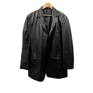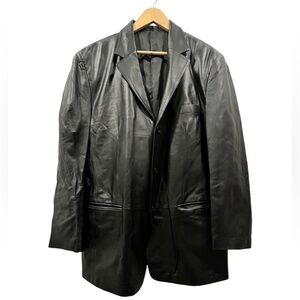 J. FERRAR Genuine Leather Blazer Jacket Black
