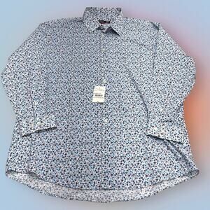 J FERRAR Men's XL SLIM Floral Blue Dress Shirt