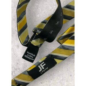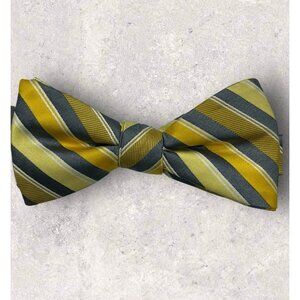 J. FERRAR Polyester Bow Tie Gray Gold Striped W:2.2" EUC