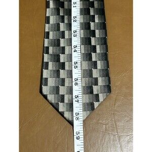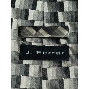 J. Ferrar 100% Silk Tie Gray Black Geometric Block Pattern 58" Handmade Necktie