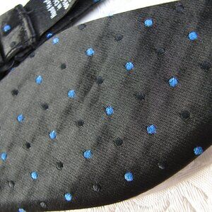 J. Ferrar Adjustable BOWTIE Bow Tie, Black & Blue Polka Dots on Black NWOT