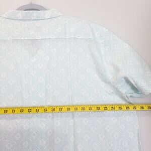 J. Ferrar Button Up Shirt Linen Blend Men XXL Slim Short Sleeve Geo White Blue