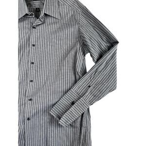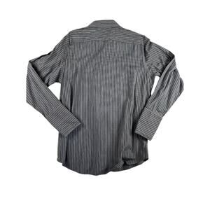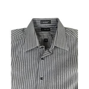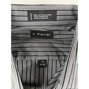 J Ferrar Dress Shirt Mens 17 34-35 Gray Black Striped Cotton Long Sleeve