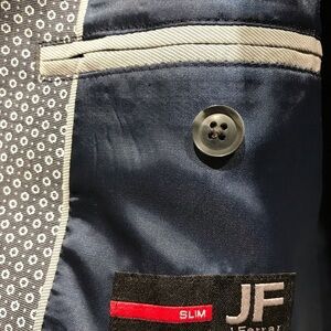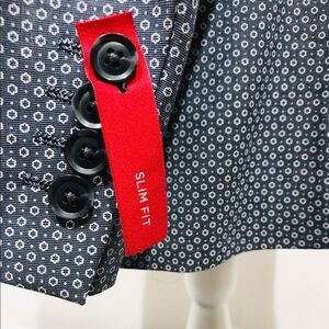 New with tags. Beautiful blue and white micro flower patterned two button slim fit blazer.