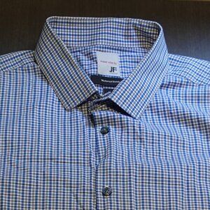 This is a beautiful J Ferrar Long Sleeve Button Down Long Sleeve. Plaid Pattern with blue colors. Super Slim Fit, Mechanical Stretch.