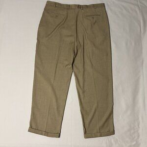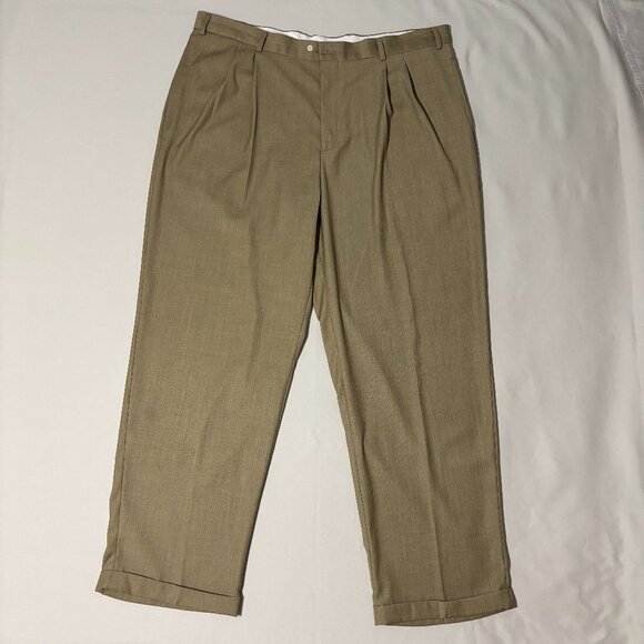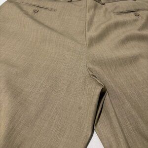 J. Ferrar Mens Dress Pants 42x32 Pleated Khaki Tan Polyester Slacks