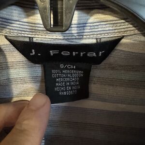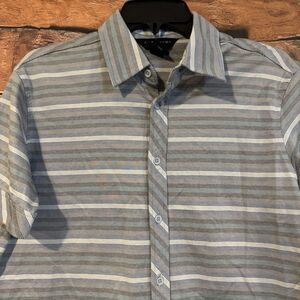 J Ferrar Men's Small Gray Striped Short Sleeve Button Down Shirt Casual Cotton