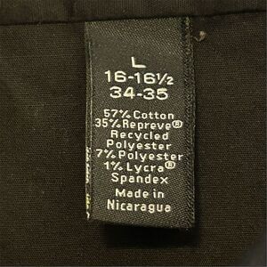 The J. Ferrar men's button-up shirt in size large features a regular fit with long sleeves and a point collar. Made from a blend of cotton, Repreve recycled polyester, polyester, and Lycra spandex, it offers stretch for comfort. The solid black shirt is designed for casual occasions and is machine washable. Manufactured in Nicaragua, it is ideal for fall wear. The shirt is pre-owned but in excellent condition. Keywords: J. Ferrar, men's shirt, button-up, black shirt, long sleeve, casual wear, fall fashion, machine washable, recycled polyester, stretch fabric.