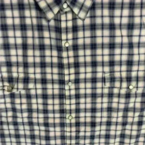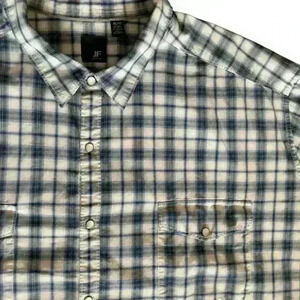 Step up your cowboy game with this J. Ferrar Western-style shirt. Featuring two pearl snap front pockets along with pearl snaps down the front. Size 4XL/4XG. This snap down shirt is missing one pearl snap loop as shown in pics. No stains or holes.