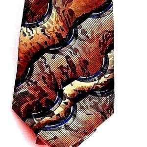 J Ferrar Mens NeckTie 58 x 4 Brown Cream Geometric Classic Wide Tie Silk Italy