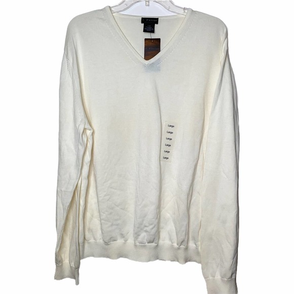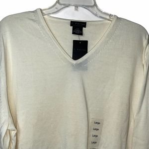 J Ferrar V-Neck Cream Pullover Sweater NEW