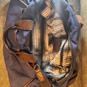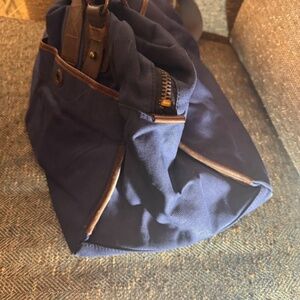 J. Fold Roadster Duffel Bag Blue Canvas Brown & Leather (Authentic Pre-Owned)