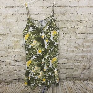 J For Justify Womens Small Green White Palm Leaf Print Faux Button Sundress in excellent used condition. No stains, tears or rips.