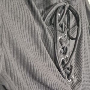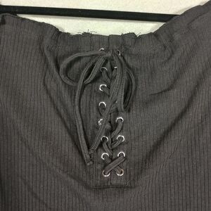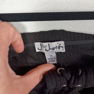 J For Justify Mini Dress Womens M Off Shoulder Lace Up BLack Ribbed Goth Grunge