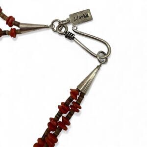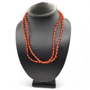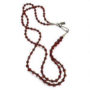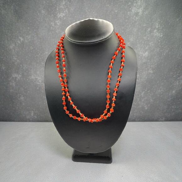 J. Forks Small Nugget Red Coral and Brown Pin Shell Double-strand Necklace 18”