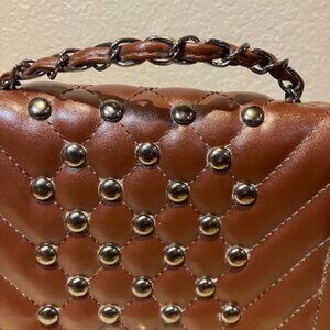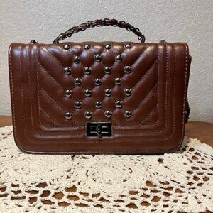 Elevate your style with this J. Francis handbag, designed with a shoulder strap for convenience. The bag is made of durable PVC material, accented with studs and a quilted finish, making it a perfect choice for any occasion. The double turn lock closure ensures the safety of your belongings, while the shoulder strap allows for comfortable carrying. The bag features inner dividers and pockets, providing ample storage space for your essentials. The polyester lining material and ivory lining color add a touch of elegance to the bag, making it a perfect accessory for any outfit. This medium-sized bag is perfect for everyday use and is sure to make a statement wherever you go.