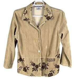 vintage clothing women's jacket corduroy dress J.G. Hook floral pattern beige outfit brown accents size 14 dress cotton fabric retro style matching set fall fashion women's vintage
