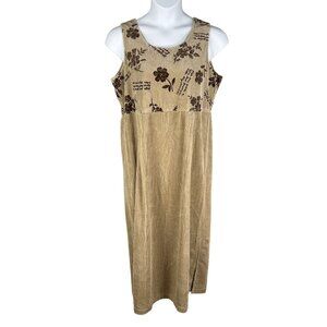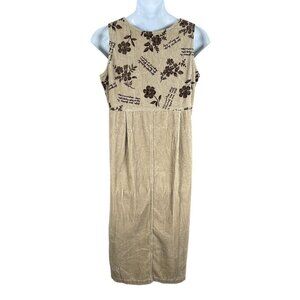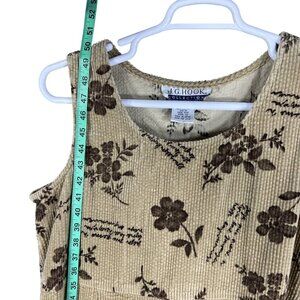 J G Hook Collection Womens 14 Floral Corduroy Jacket Shift Sleeveless Dress Maxi 2 Piece Set Beige Brown Retro Academia Cottagecore