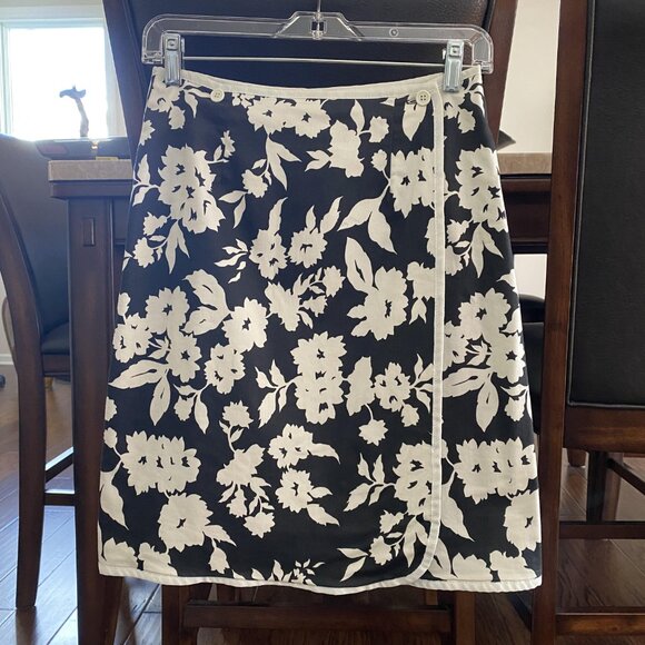 This J. G. Hook reversible wraparound skirt is versatile and comfortable. It allows you to have two skirts in one, a black & white flower pattern or a black & white dotted pattern. It is wrinkle resistant, so it's great for travel.