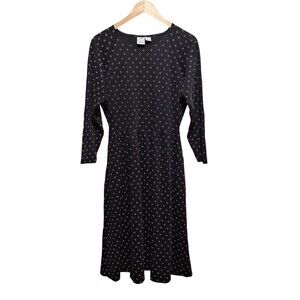 J G Hook Women’s Size L Shirtwaist Dress WASP Black 100% Cotton Long Sleeves VTG