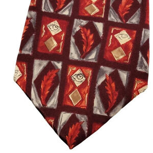 J. GARCIA Men's 100% Silk Tie Landscape with Eye Collection Ten Red Feathers Excellent preowned condition Approximate measurements: Length: 60" Width at max: 4" Width at min: 1"