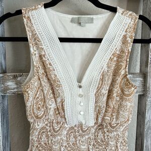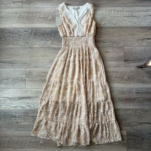 J GEE Maxi Sundress Petite S Paisley Smocked Tiered Ruffle Prarie Tank Dress