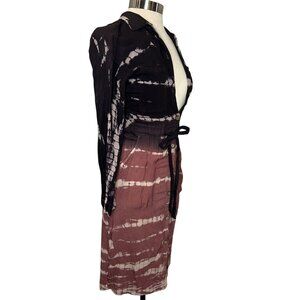 J. GEE Tie-Dye Button-Up Women's Small Multi-Color Long-Sleeve Midi Dress With Tie Belt