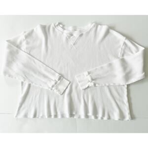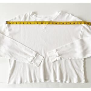 J Galt Waffle Knit Shirt Women One Size White Cropped Thermal Minimalist