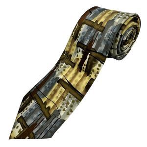 J Garcia Collection Fifty-Seven Necktie Brown Blue Watercolor Artistic Tie. Tie Width: 3 1/2 Tie Length: 59