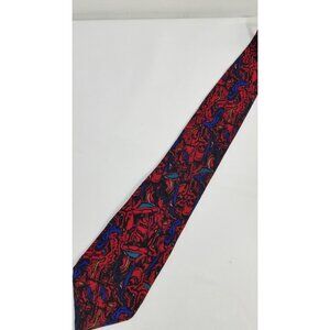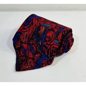 J. Garcia Mens Necktie Abstract Red Blue Silk Tie Hand Sewn In USA