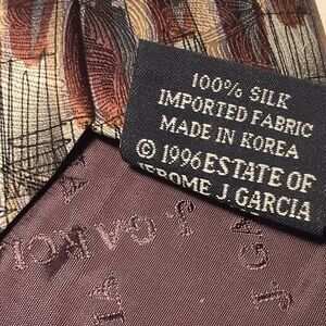 Abstract print in shades of brown and gray. It measures approximately 57” in length and 4” in width at the tip.