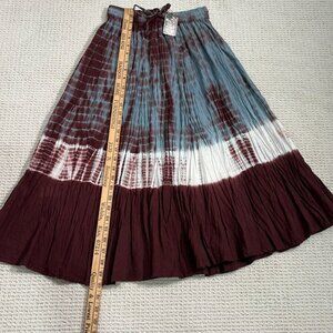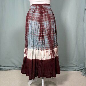 J Gee Bohemian Tie-Dye Crinkled Midi Skirt M Hippie Gypsy Airy Flowy Elastic