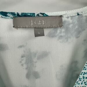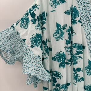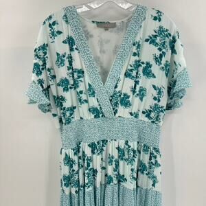 J. Gee Boho Flutter Floral Midi Dress Sz L Green White Tiered Smocked Flowy