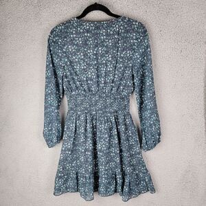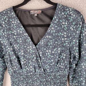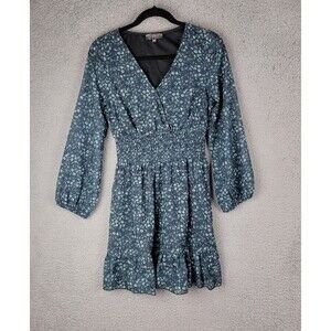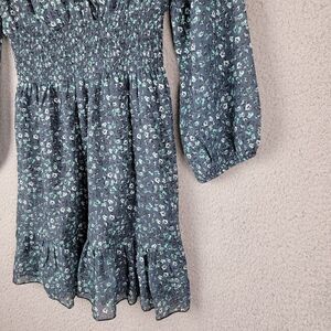 J Gee Dress Womens PM Green Floral V-Neck Smocked Cottagecore Ruffle